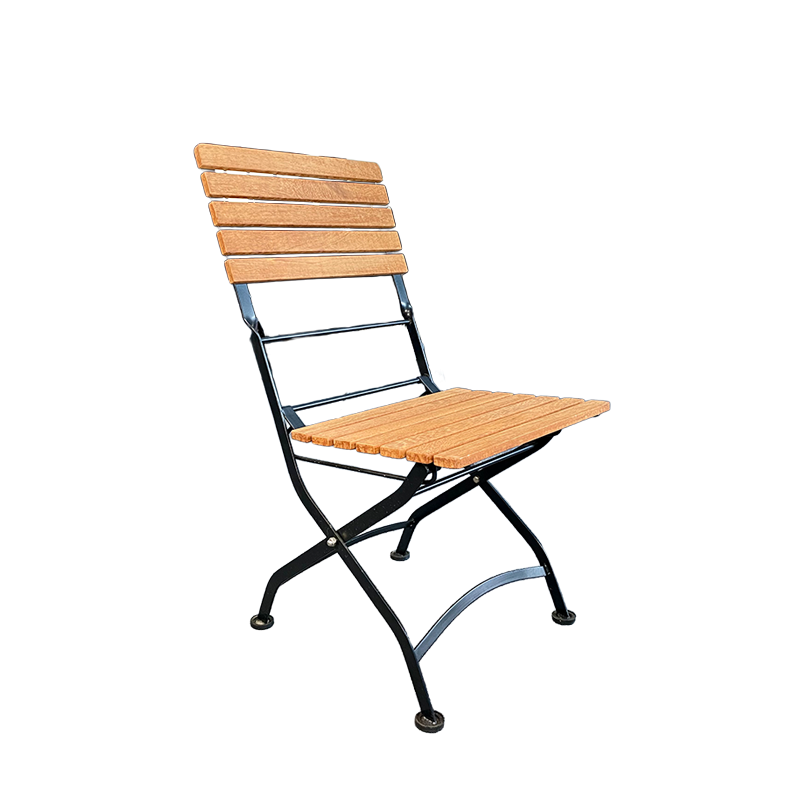 Gartenstuhl Hieplong® aus Teakholz und Eisen klappbar überzeugt mit Teakholz-Sitzfläche, stabilem Eisengestell und platzsparender Klappfunktion. Ideal für Garten und Gastronomie.