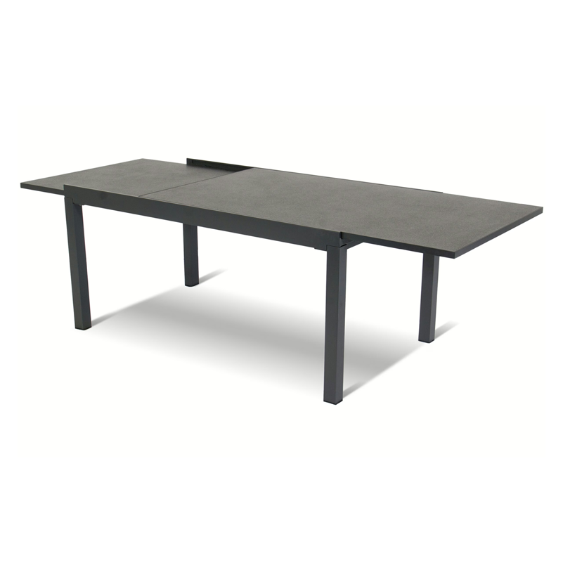 Gartentisch Hartman® Tipperary Ausziehtisch 160/260×90 cm mit HPL Dunkel Grau und Aluminiumgestell Xerix. Wetterfest, stabil und pflegeleicht – ideal für Garten und Terrasse.