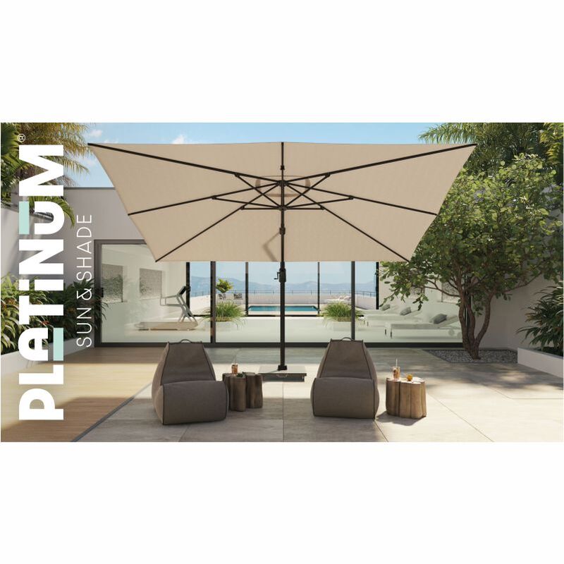 Der Ampelschirm Platinum® Challenger T¹ 300×300 cm bietet elegantes und stabiles Design. Der Aluminium-Mast 86×53 mm sorgt für hohe Robustheit. Das Schirmtuch bleibt farbecht und schützt zuverlässig vor UV-Strahlung. Ideal für Garten, Terrasse und professionelle Außenbereiche.
