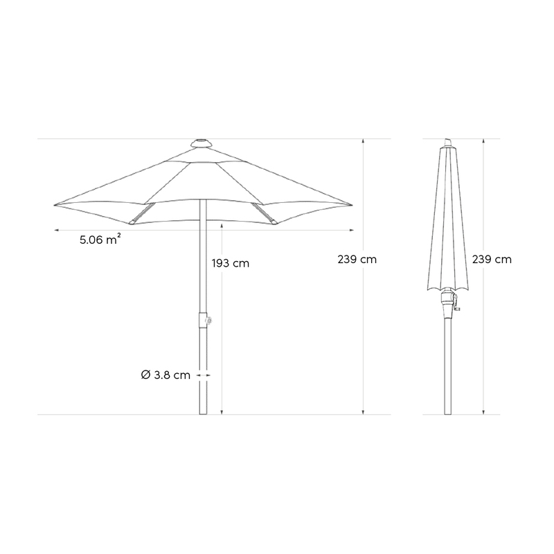 Der Lisboa nutzt hochwertiges Polyestergewebe mit ca. 220 g/m². Das Tuch ist farbecht und pflegeleicht. Es bietet zuverlässigen UV-Schutz bis zu 96 %. Die wasser- und schmutzabweisende DWR-Beschichtung schützt vor Feuchtigkeit und Verschmutzungen.