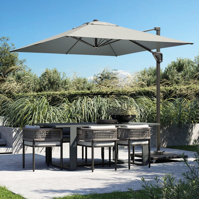 - Schirmständer 90 kg, 120 kg oder 150 kg – je nach Modell mobile Lösung mit Rollen oder schwere Ausführung für maximale Stabilität in windanfälligen Bereichen.