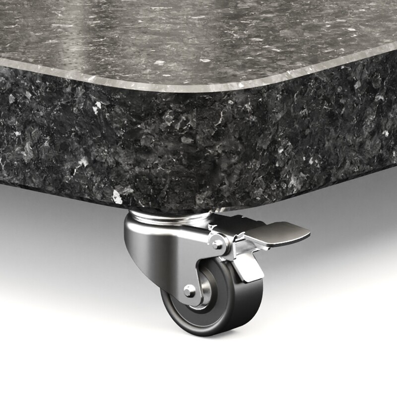 Der Schirmständer Platinum® Ancona Round Edge 6222 aus Granit, 90 kg, poliert, mit Schwenkrädern und Bremse bietet hohe Stabilität im Außenbereich. Er ist für den sicheren Einsatz von Ampelsonnenschirmen konzipiert. Die Granitoberfläche in Anthrazit sorgt für eine hochwertige Optik. Die Farbe bleibt langfristig beständig.