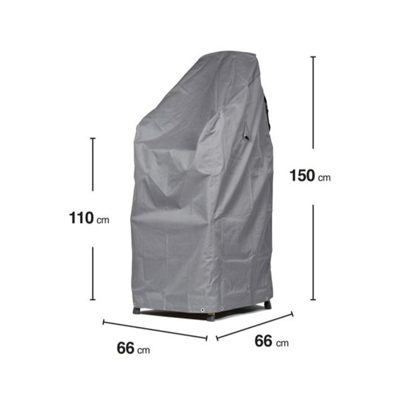Die Hülle ist speziell für Stapel- und Klappsessel konzipiert. Mit den Maßen 66 × 66 × 110/150 cm deckt sie gängige Modelle zuverlässig ab. Die dezente Farbe Lichtgrau sorgt für ein unauffälliges Erscheinungsbild und fügt sich harmonisch in jede Terrasse oder Gartenumgebung ein.