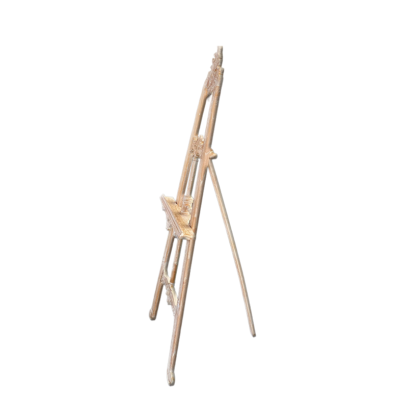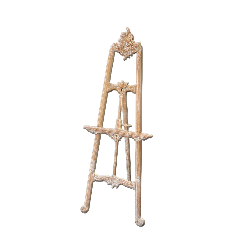 Die Staffelei besitzt eine stabile, verstellbare Ablage. Sie eignet sich für große Spiegel, Bilderrahmen oder dekorative Tafeln. Die solide Konstruktion bietet sicheren Stand, und die breiten Füße erhöhen die Stabilität zusätzlich. Durch ihre Höhe wirkt die Staffelei imposant und zieht Aufmerksamkeit auf sich. Deshalb eignet sie sich hervorragend für Galerien, Ausstellungen oder festliche Veranstaltungen. Auch im privaten Wohnbereich setzt sie dekorative Akzente.