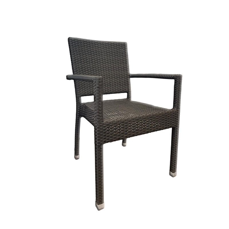 Stapelsessel Hongkong PE-Geflecht Schwarz – stabiler Gartensessel mit Aluminiumgestell und Kunststoffgeflecht, wetterfest, pflegeleicht und stapelbar.