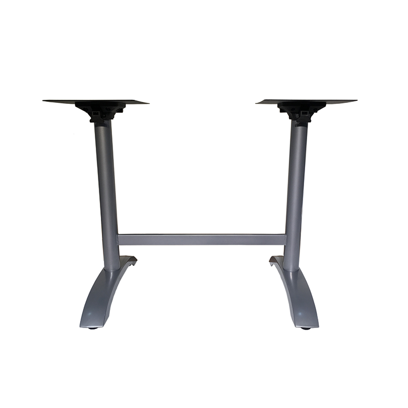 Das Gestell überzeugt durch seine klare Linienführung und die silberfarbene Pulverbeschichtung. Es fügt sich harmonisch in verschiedene Gastro- und Einrichtungskonzepte ein. Dank der Doppelwangen-Konstruktion bietet es eine große Auflagefläche für Tischplatten und wirkt zugleich modern und professionell.